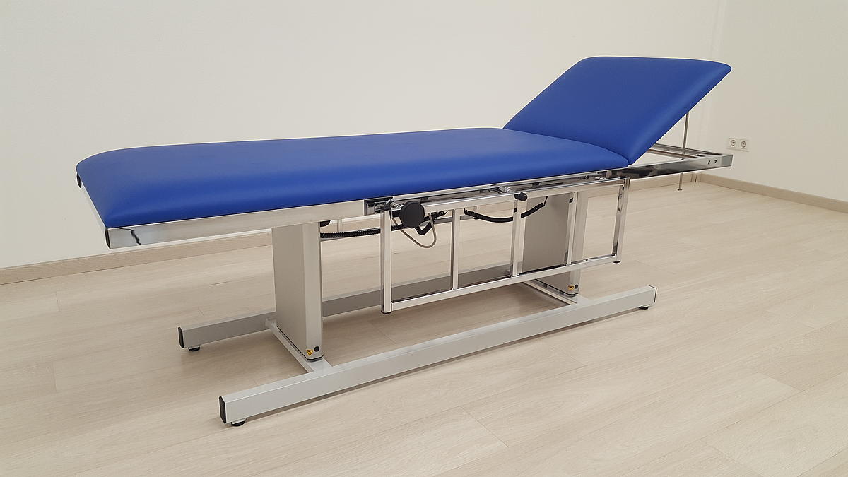 They are controlled by a hand switch with 6 buttons, which is multitasking capable (allows simultaneous operation of the height and tilt adjustment). With regard to the power supply, a floor socket in the area of the examination table is also desirable for these examination tables.