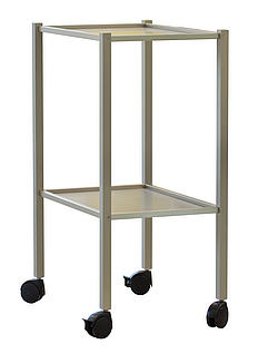 Der MRT-taugliche Instrumententisch oder auch Zureichetisch von AGA Sanitätsartikel ist mit zwei Ablageböden in den Höhen von 340 mm und 930 mm ausgestattet. Die vier Doppelrollen, von denen zwei Rollen feststellbar sind, weisen gute Fahr- und Rolleigenschaften auf.